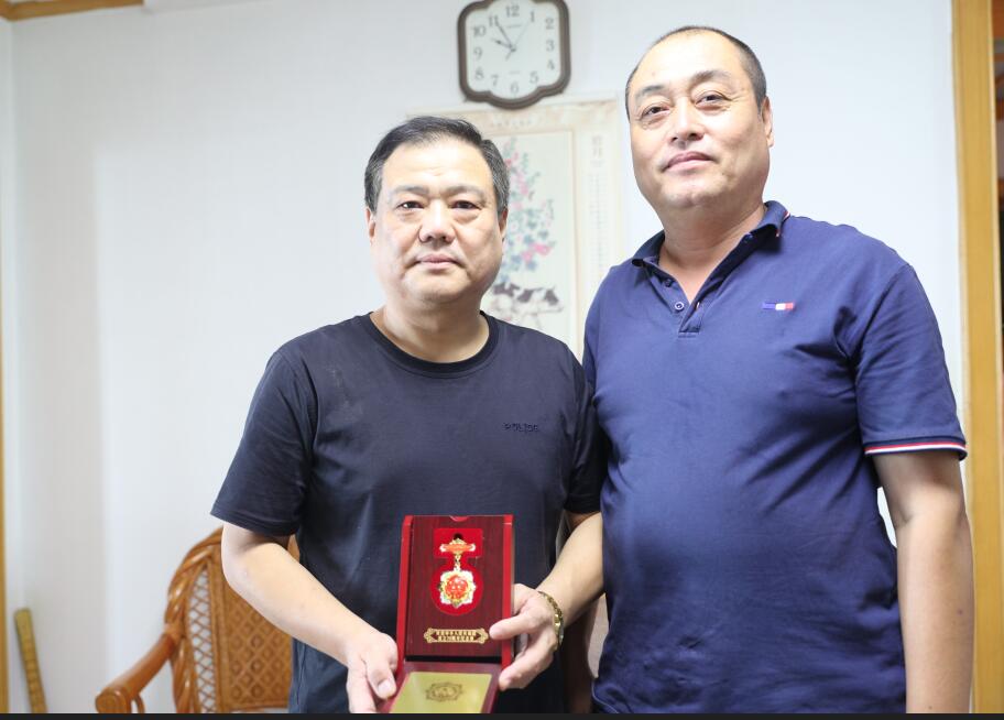 9月23日上午,青島安裝建設(shè)股份有限公司紀(jì)委書記、工會主席李金通與相關(guān)同志帶著上級領(lǐng)導(dǎo)部門和公司領(lǐng)導(dǎo)的重托,將這枚閃耀著光輝象征與最高榮譽的獎?wù)滤偷搅艘娮C共和國誕生和發(fā)展奇跡并為之做出突出貢獻的全國勞模賀再奎及家人手中。感謝他為祖國和人民的無私奉獻,更感謝他為青島安裝公司帶來的無尚榮耀。